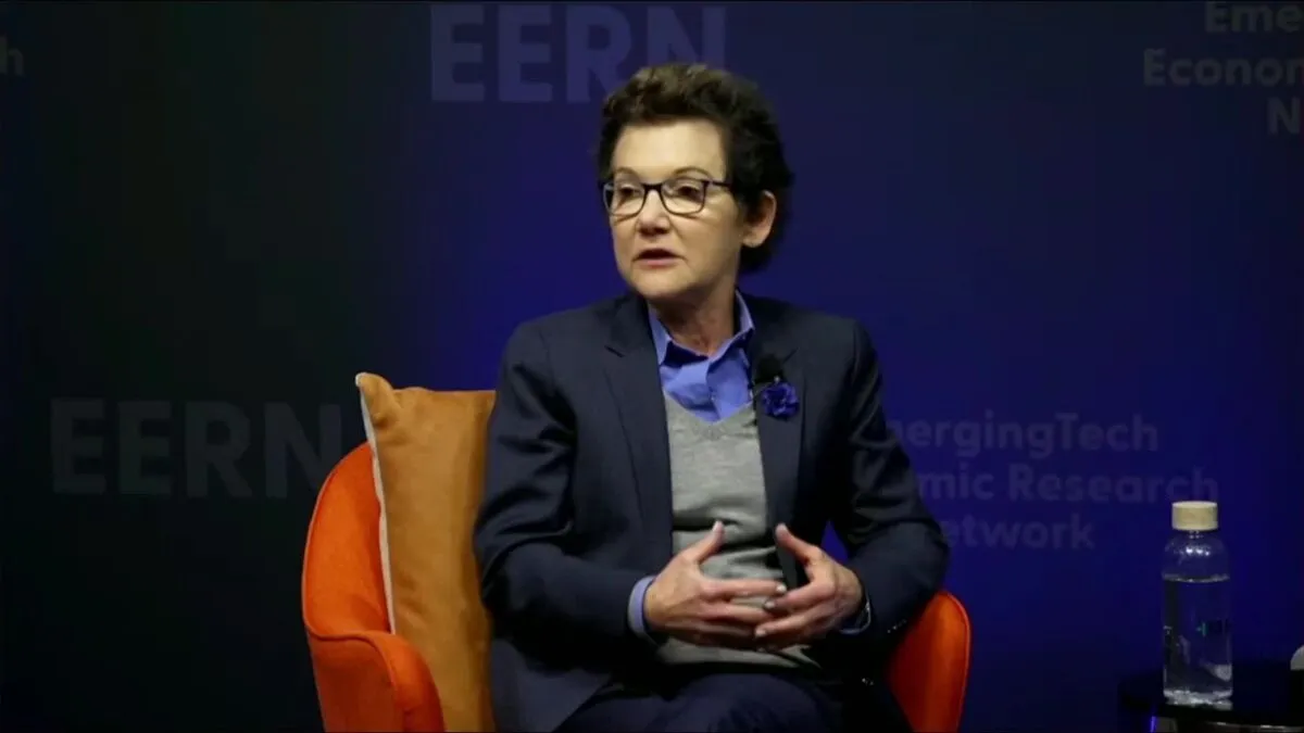 Federal Reserve Bank of San Francisco President Mary Daly discusses AI implications for workforce development and economic mobility at an event hosted by the San Francisco Business Times. (Source: Bloomberg)