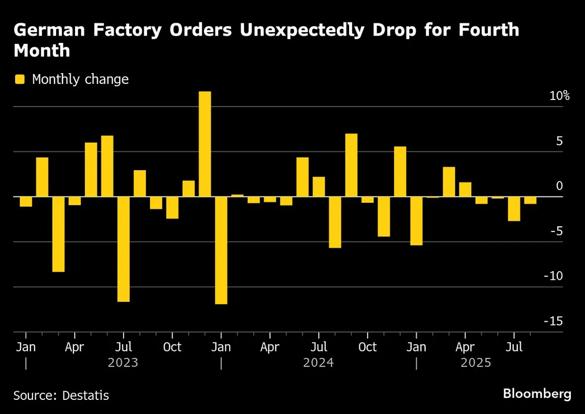 German Factory Orders Drop, Challenging Merz’s Recovery Push