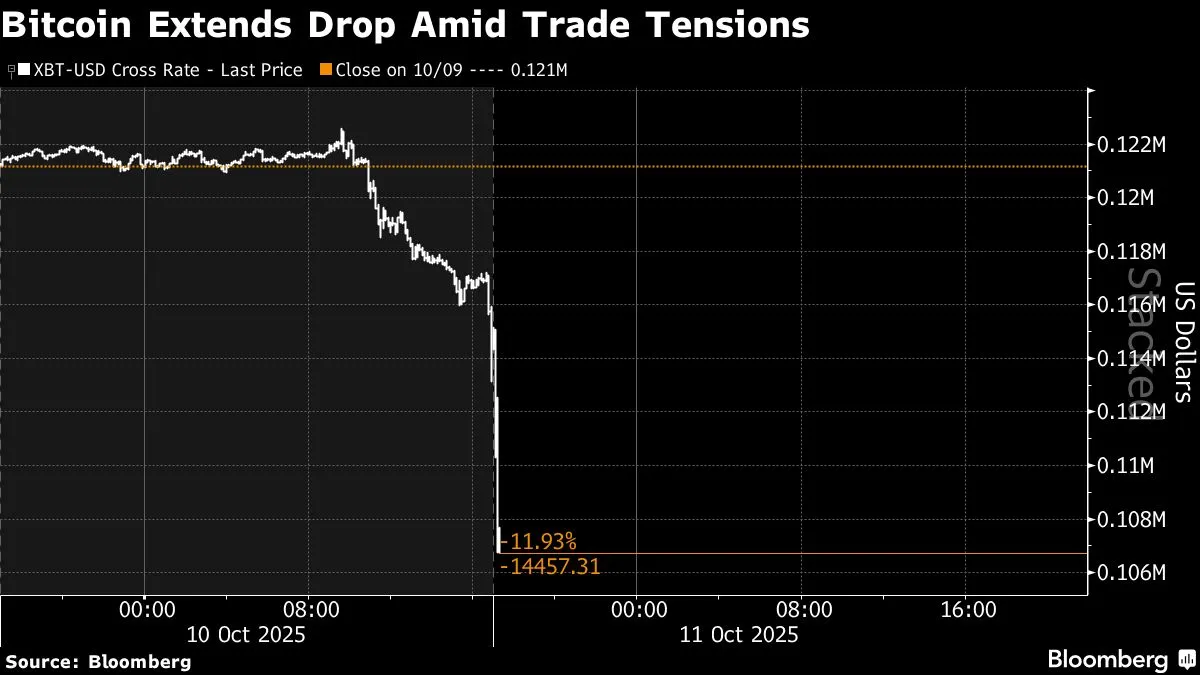Crypto market traders were hit by record liquidations just days after Bitcoin touched an all-time high, volatility triggered in large part by the latest round of tariffs from US President Donald Trump. Source: Original Навигация по записям Lumen CFO on Massive Debt Restructuring Schwab’s New Assets Rise on Demand, New Yorkers Face Likely Tax Hikes | Bloomberg Markets 10/17/2025