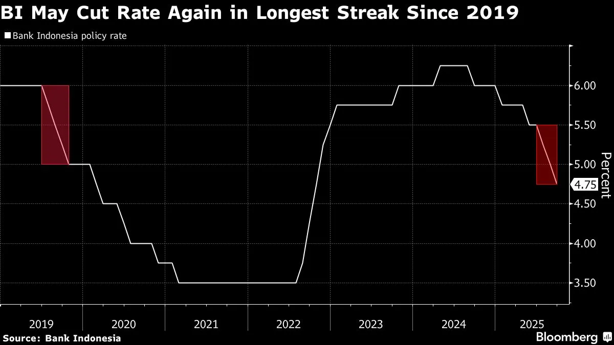 Indonesia’s central bank is poised to lower borrowing costs for a fourth straight month as part of its pledge to go “all out” in buoying economic growth.