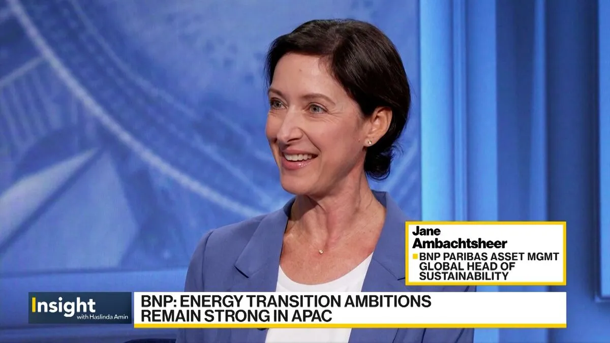 BNP Paribas Asset Mgmt Global Head of Sustainability Jane Ambachtsheer says despite geopolitical headwinds, the energy transition is still underway, but it’s the pace that is at risk. She speaks with Haslinda Amin on «Insight with Haslinda Amin.» (Source: Bloomberg)