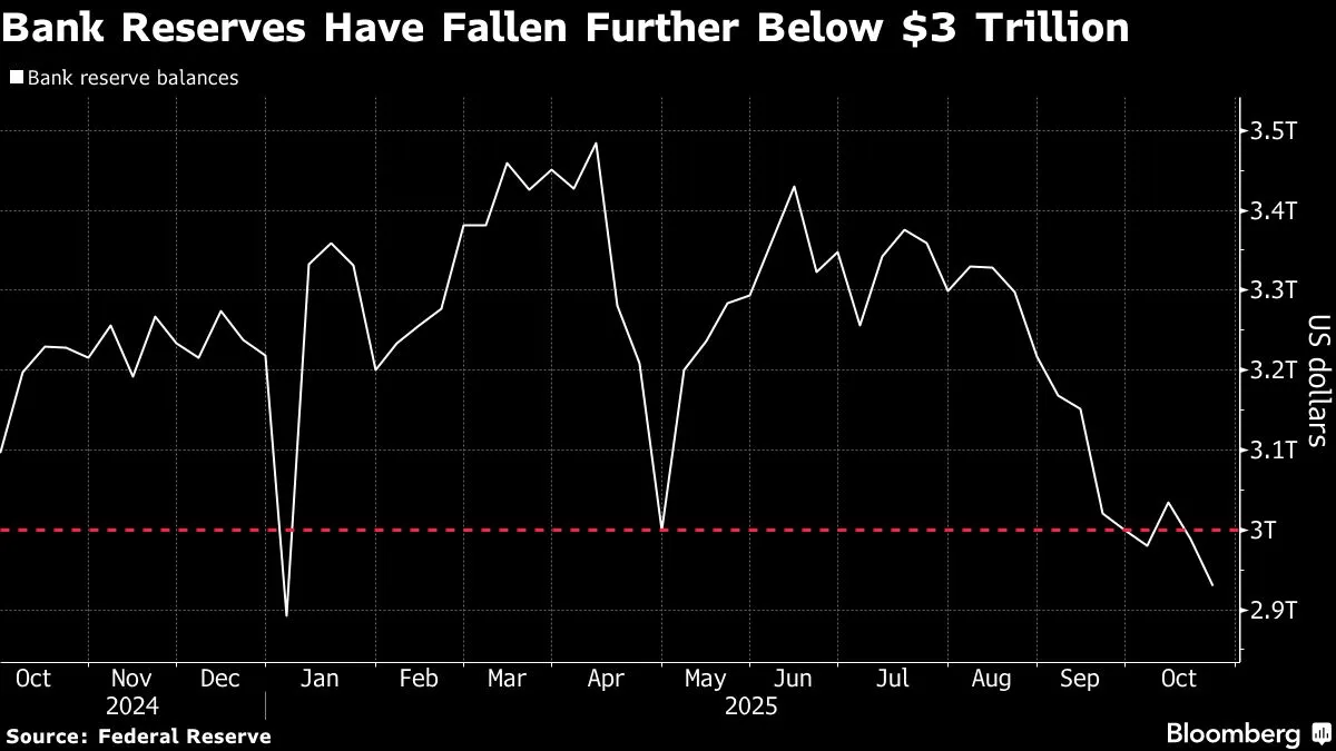 Bank Reserves Decline for Second Consecutive Week, Falling Below $3 Trillion
