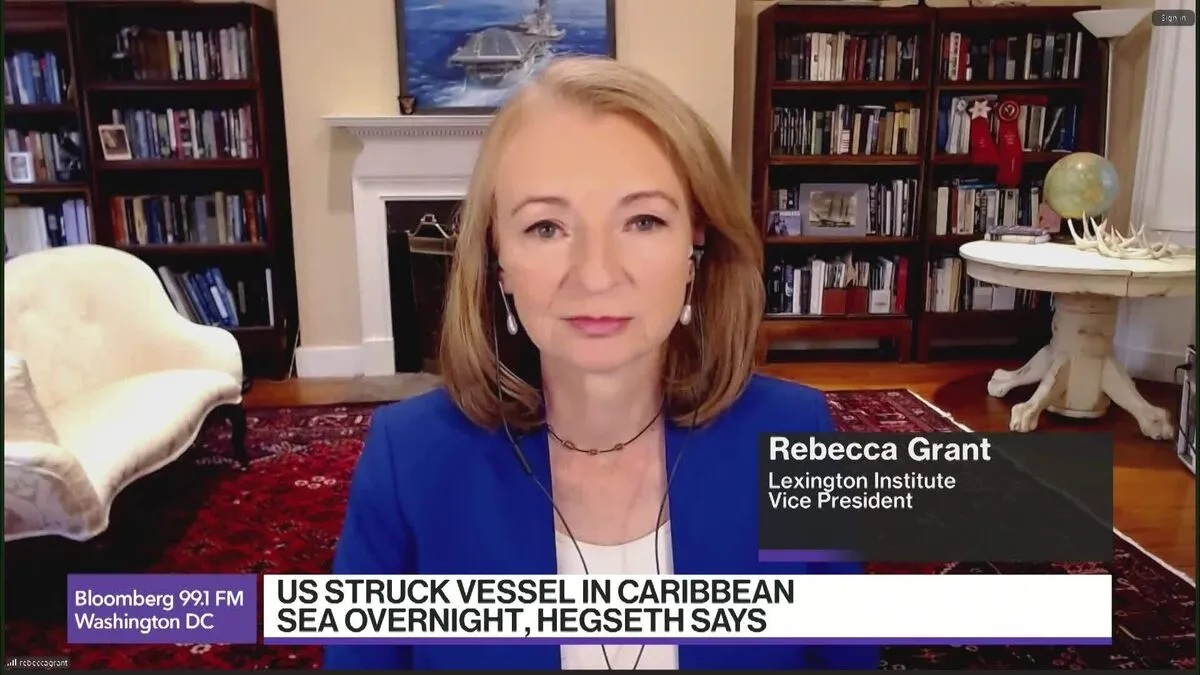 Rebecca Grant, vice president of the Lexington Institute, said that the US decision to send a naval strike group including aircraft carrier Gerald R. Ford to Latin America ‘extends the options’ the Trump administration has in its campaign on Venezuela. (Source: Bloomberg)