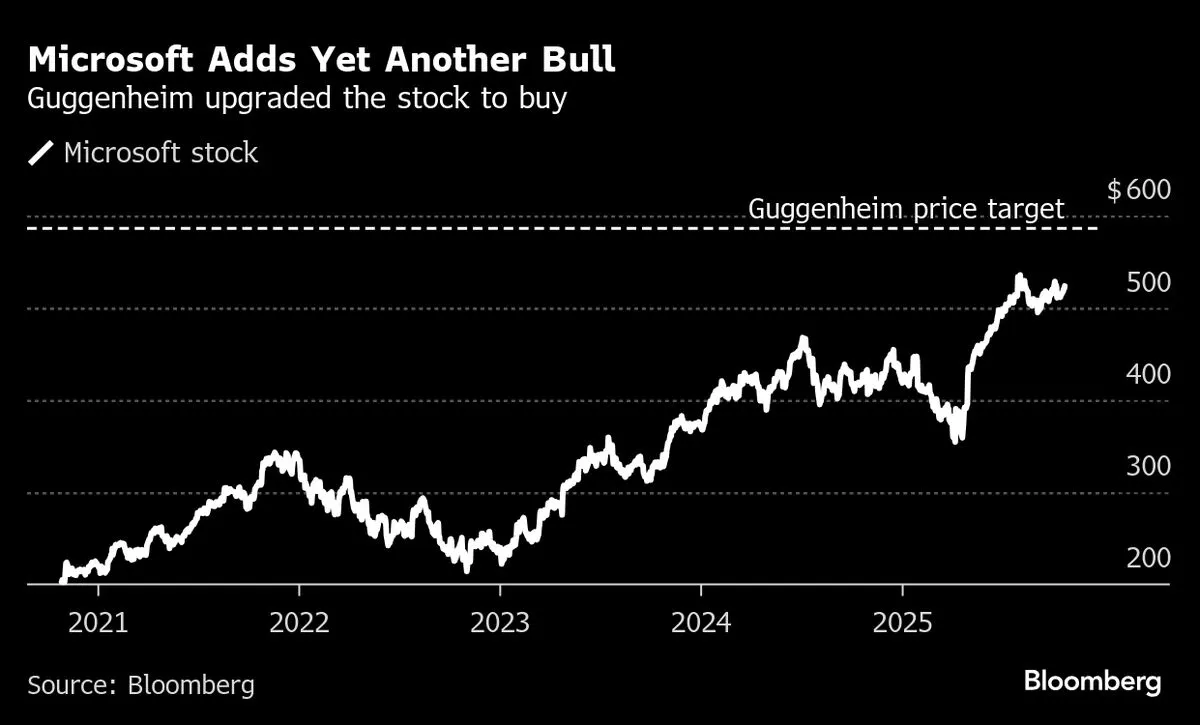 Wall Street analysts are now almost universally bullish on Microsoft Corp., with Guggenheim upgrading the software company to buy from hold ahead of its quarterly results.