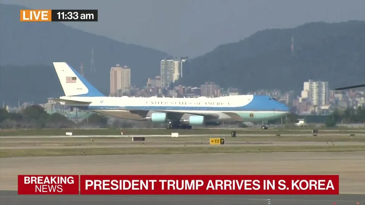 US President Donald Trump arrives in South Korea, where he will meet with his Chinese counterpart Xi Jinping for high-stakes talks later this week. (Source: Bloomberg)