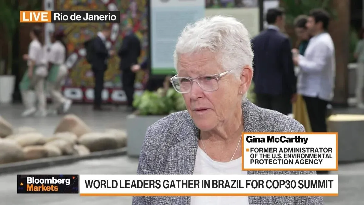 As Brazil hosts the United Nations Climate Change Conference, former White House National Climate Advisor Gina McCarthy says the US clean-energy transition is thriving at the state, local, and private-sector level, even as federal climate policy wanes under the Trump administration. She joins Bloomberg’s David Gura in Rio de Janeiro. (Source: Bloomberg)