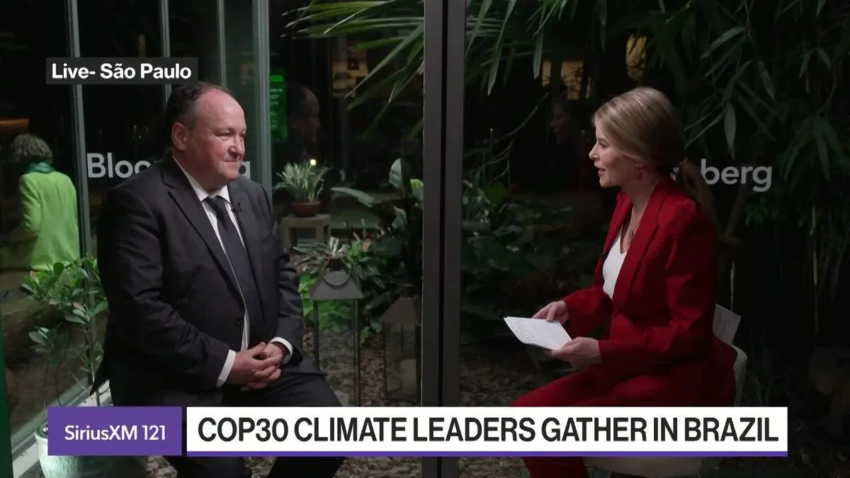 Amborise Fayolle, European Investment Bank VP, sat down with Bloomberg’s Vonnie Quinn at the COP30 conference in Brazil to discuss climate investment across Europe and the intersection between humanitarian and climate projects. (Source: Bloomberg)